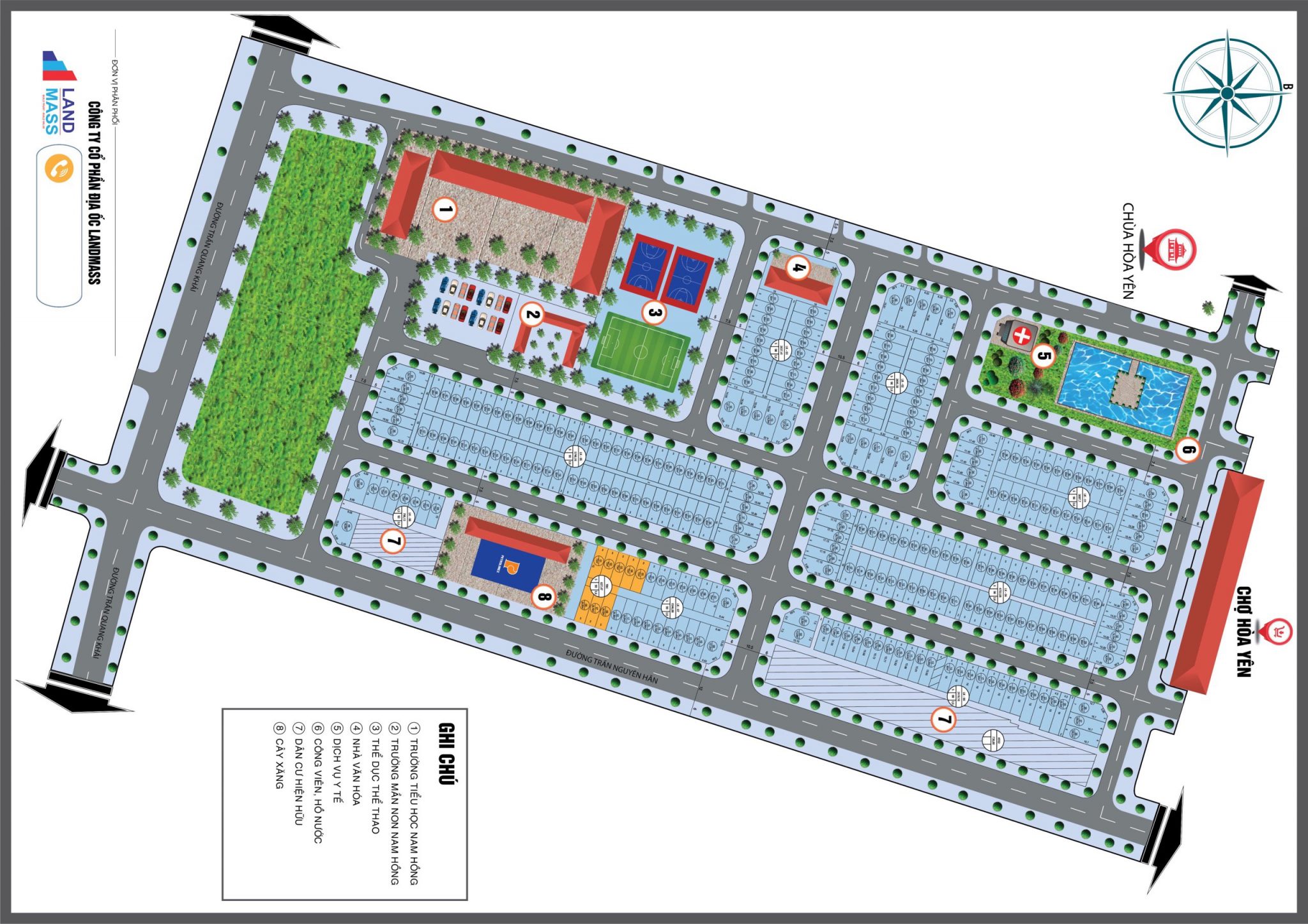 - Khu vực mua sắm và chợ Hòa Yên: Tích hợp cùng các dãy nhà liền kề, giúp cư dân buôn bán, kinh doanh thuận lợi và nhanh chóng sinh lời.
